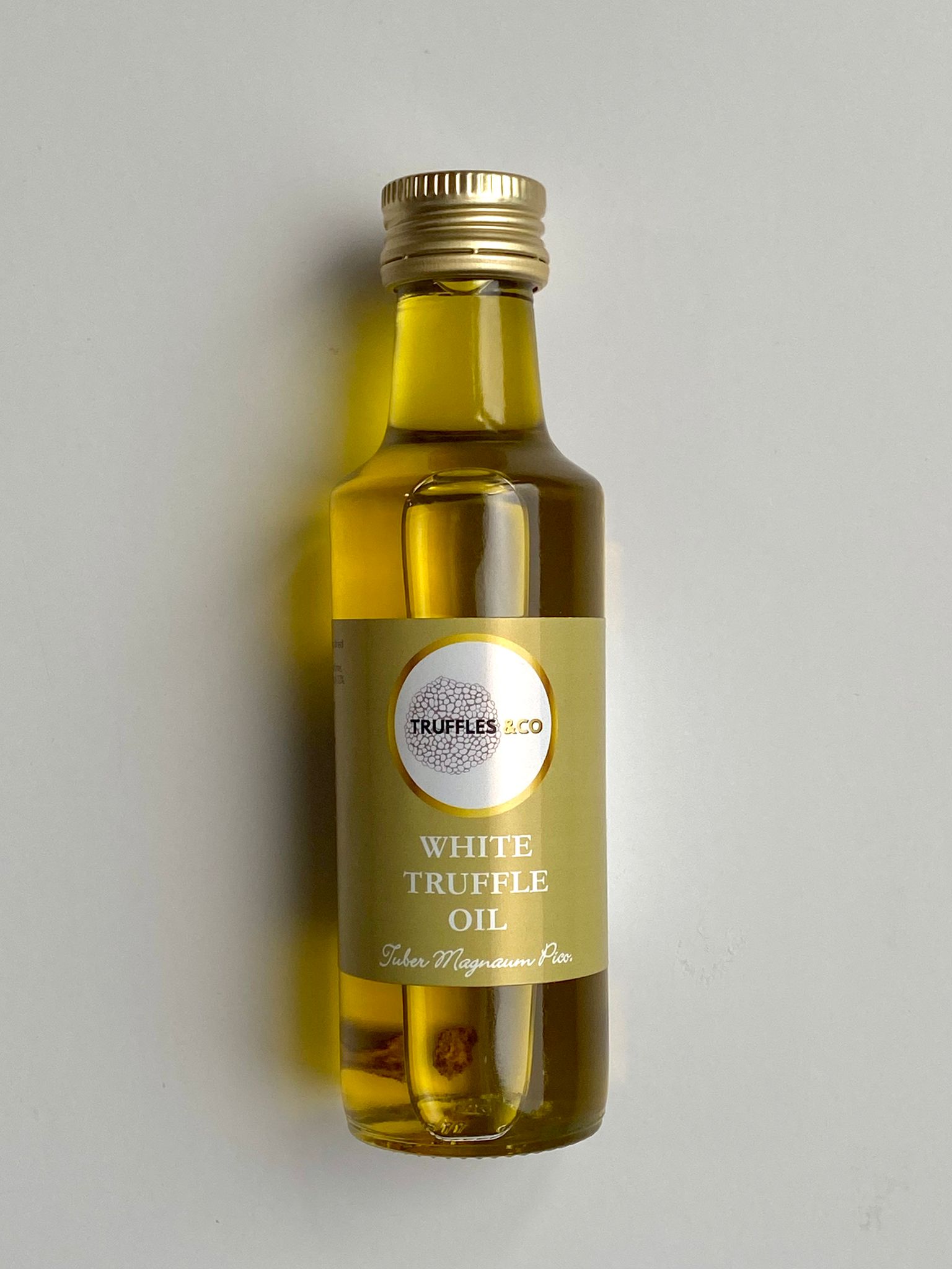 Extra virgin olive oil 99%, aroma, dried white truffle (Tuber magnatum Pico) 0,1%.